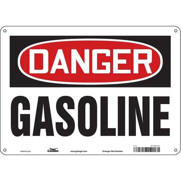Safety Sign, Horizontal Rectangle, Number of Printed Sides 1, English, Sign Format Traditional OSHA, Sign Legend Gasoline, Sign Legend Background Color White, Sign Legend Style Text