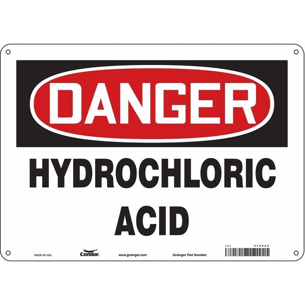 Safety Sign, Horizontal Rectangle, Number of Printed Sides 1, English, Sign Format Traditional OSHA, Sign Legend Hydrochloric Acid, Sign Legend Background Color White, Sign Legend Style Text