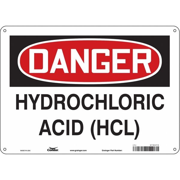 Safety Sign, Horizontal Rectangle, Number of Printed Sides 1, English, Sign Format Traditional OSHA, Sign Legend Hydrochloric Acid (Hcl), Sign Legend Background Color White, Sign Legend Style Text