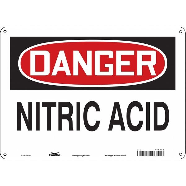 Safety Sign, Horizontal Rectangle, Number of Printed Sides 1, English, Sign Format Traditional OSHA, Sign Legend Nitric Acid, Sign Legend Background Color White, Sign Legend Style Text