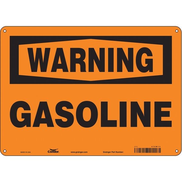 Safety Sign, Horizontal Rectangle, Number of Printed Sides 1, English, Sign Format Traditional OSHA, Sign Legend Gasoline, Sign Legend Background Color Orange, Sign Legend Style Text