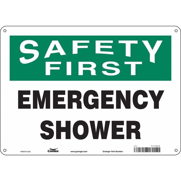 Safety Sign, Horizontal Rectangle, Number of Printed Sides 1, English, Sign Legend Emergency Shower, Sign Legend Background Color White, Sign Legend Style Text