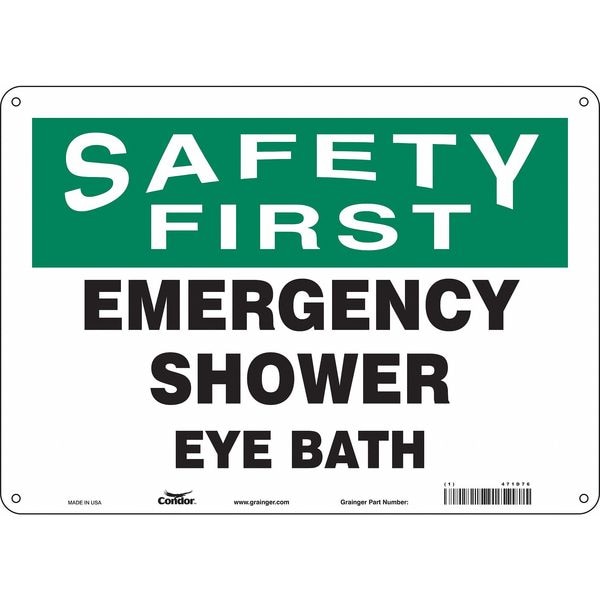 Safety Sign, Horizontal Rectangle, Number of Printed Sides 1, English, Sign Legend Emergency Shower Eye Bath, Sign Legend Background Color White, Sign Legend Style Text