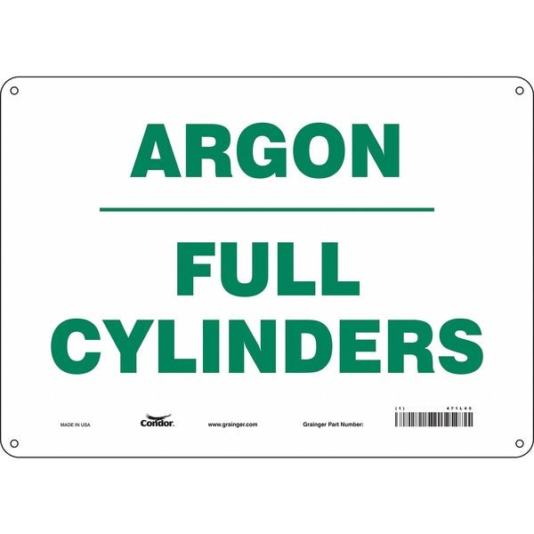 Safety Sign, Horizontal Rectangle, Number of Printed Sides 1, English, Sign Format Other Format, Sign Legend Argon Full Cylinders, Sign Legend Background Color White, Sign Legend Style Text