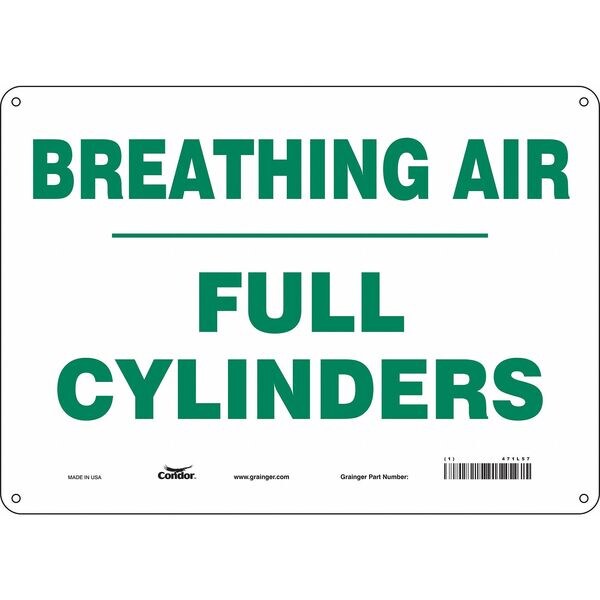 Safety Sign, Horizontal Rectangle, Number of Printed Sides 1, English, Sign Format Other Format, Sign Legend Breathing Air Full Cylinders, Sign Legend Background Color White, Sign Legend Style Text