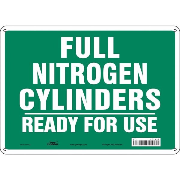 Safety Sign, Horizontal Rectangle, Number of Printed Sides 1, English, Sign Format Other Format, Sign Legend Full Nitrogen Cylinders Ready For Use, Sign Legend Background Color Green, Sign Legend Style Text