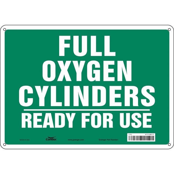 Safety Sign, Horizontal Rectangle, Number of Printed Sides 1, English, Sign Format Other Format, Sign Legend Full Oxygen Cylinders Ready For Use, Sign Legend Background Color Green, Sign Legend Style Text