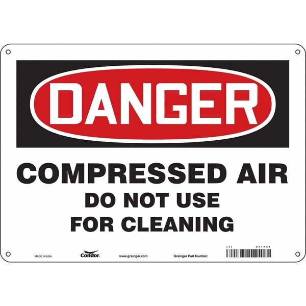 Safety Sign, Horizontal Rectangle, Number of Printed Sides 1, English, Sign Format Traditional OSHA, Sign Legend Compressed Air Do Not Use For Cleaning, Sign Legend Background Color White, Sign Legend Style Text