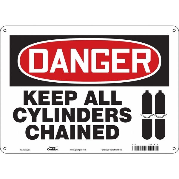 Safety Sign, Horizontal Rectangle, Number of Printed Sides 1, English, Sign Format Traditional OSHA, Sign Legend Keep All Cylinders Chained, Sign Legend Background Color White, Sign Legend Style Symbol and Text