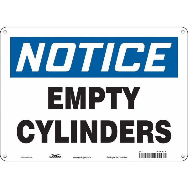 Safety Sign, Horizontal Rectangle, Number of Printed Sides 1, English, Sign Format Traditional OSHA, Sign Legend Empty Cylinders, Sign Legend Background Color White, Sign Legend Style Text