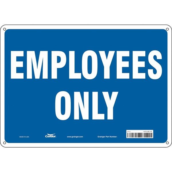 Safety Sign, Horizontal Rectangle, Number of Printed Sides 1, English, Sign Format Other Format, Sign Legend Employees Only, Sign Legend Background Color Blue, Sign Legend Style Text