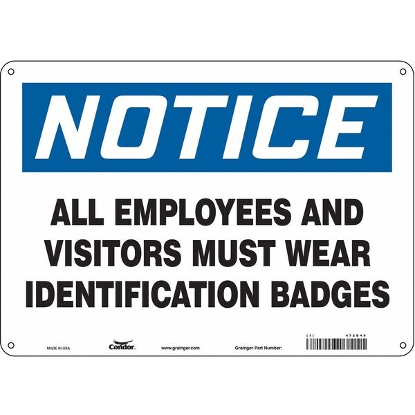 Safety Sign, Horizontal Rectangle, Number of Printed Sides 1, English, Sign Format Traditional OSHA, Sign Legend All Employees And Visitors Must Wear Identification Badges, Sign Legend Background Color White, Sign Legend Style Text