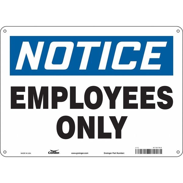 Safety Sign, Horizontal Rectangle, Number of Printed Sides 1, English, Sign Format Traditional OSHA, Sign Legend Employees Only, Sign Legend Background Color White, Sign Legend Style Text