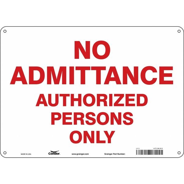 Safety Sign, Horizontal Rectangle, Number of Printed Sides 1, English, Sign Format Other Format, Sign Legend No Admittance Authorized Persons Only, Sign Legend Background Color White, Sign Legend Style Text