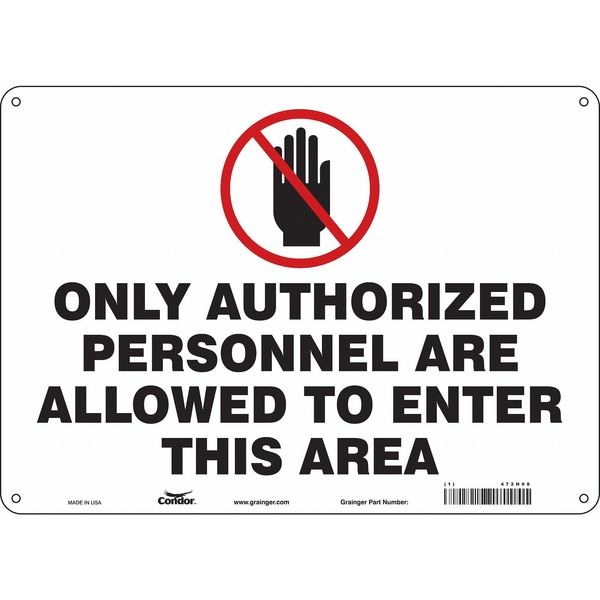 Safety Sign, Horizontal Rectangle, Number of Printed Sides 1, English, Sign Format Other Format, Sign Legend Only Authorized Personnel Are Allowed To Enter This Area, Sign Legend Background Color White, Sign Legend Style Symbol and Text