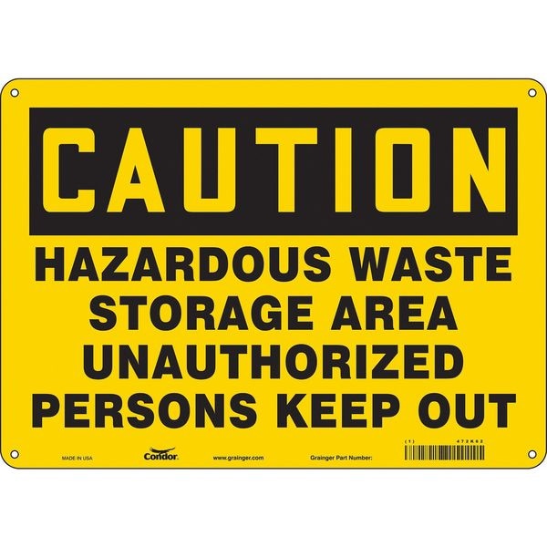 Safety Sign, Horizontal Rectangle, Number of Printed Sides 1, English, Sign Format Traditional OSHA, Sign Legend Hazardous Waste Storage Area Unauthorized Persons Keep Out, Sign Legend Background Color Yellow, Sign Legend Style Text