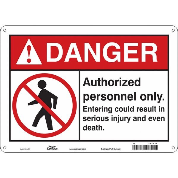 Safety Sign, Horizontal Rectangle, Number of Printed Sides 1, English, Sign Format ANSI/OSHA Format, Sign Legend Authorized Personnel Only. Entering Could Result In Serious Injury And Even Death., Sign Legend Background Color White, Sign Legend Style Symbol and Text