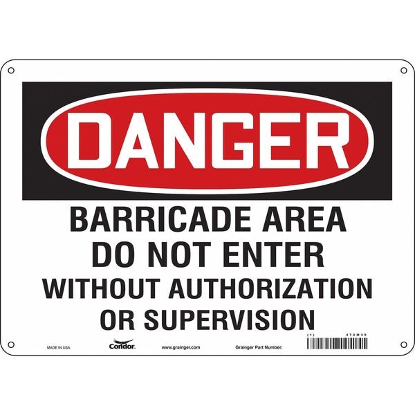 Safety Sign, Horizontal Rectangle, Number of Printed Sides 1, English, Sign Format Traditional OSHA, Sign Legend Barricade Area Do Not Enter Without Authorization Or Supervision, Sign Legend Background Color White, Sign Legend Style Text
