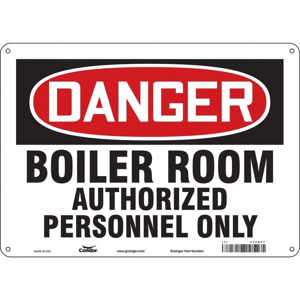 Safety Sign, Horizontal Rectangle, Number of Printed Sides 1, English, Sign Format Traditional OSHA, Sign Legend Boiler Room Authorized Personnel Only, Sign Legend Background Color White, Sign Legend Style Text