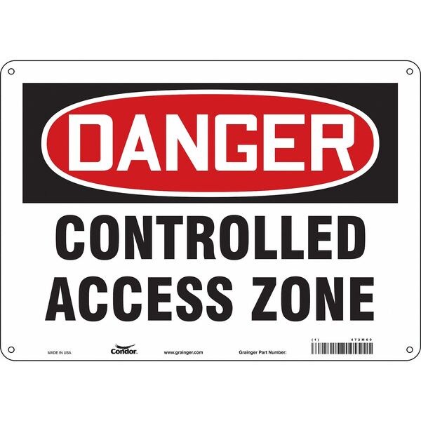 Safety Sign, Horizontal Rectangle, Number of Printed Sides 1, English, Sign Format Traditional OSHA, Sign Legend Controlled Access Zone, Sign Legend Background Color White, Sign Legend Style Text