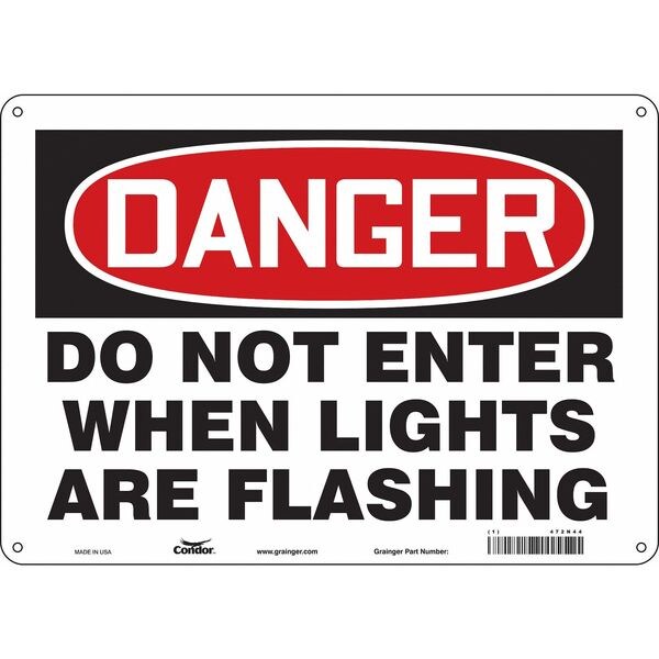 Safety Sign, Horizontal Rectangle, Number of Printed Sides 1, English, Sign Format Traditional OSHA, Sign Legend Do Not Enter When Lights Are Flashing, Sign Legend Background Color White, Sign Legend Style Text