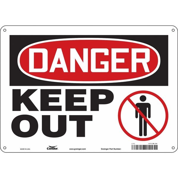 Safety Sign, Horizontal Rectangle, Number of Printed Sides 1, English, Sign Format Traditional OSHA, Sign Legend Keep Out, Sign Legend Background Color White, Sign Legend Style Symbol and Text