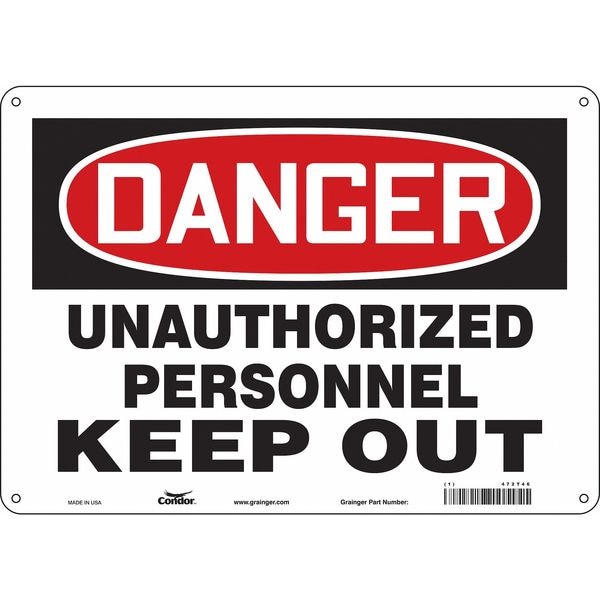 Safety Sign, Horizontal Rectangle, Number of Printed Sides 1, English, Sign Format Traditional OSHA, Sign Legend Unauthorized Personnel Keep Out, Sign Legend Background Color White, Sign Legend Style Text