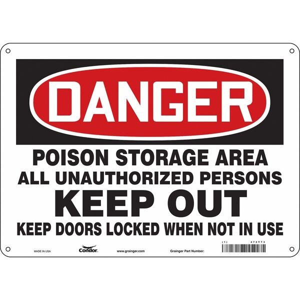 Safety Sign, Horizontal Rectangle, Number of Printed Sides 1, English, Sign Format Traditional OSHA, Sign Legend Poison Storage Area All Unauthorized Persons Keep Out Keep Doors Locked When Not In Use, Sign Legend Background Color White, Sign Legend Style Text