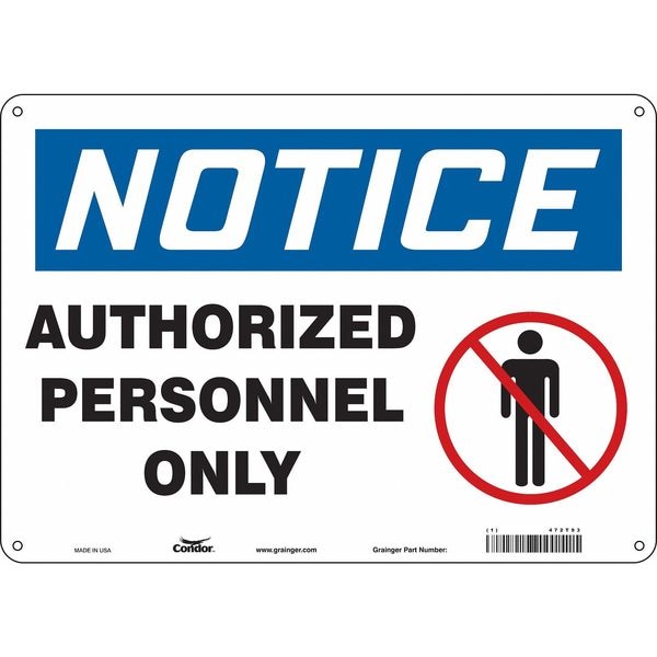 Safety Sign, Horizontal Rectangle, Number of Printed Sides 1, English, Sign Format Traditional OSHA, Sign Legend Authorized Personnel Only, Sign Legend Background Color White, Sign Legend Style Symbol and Text