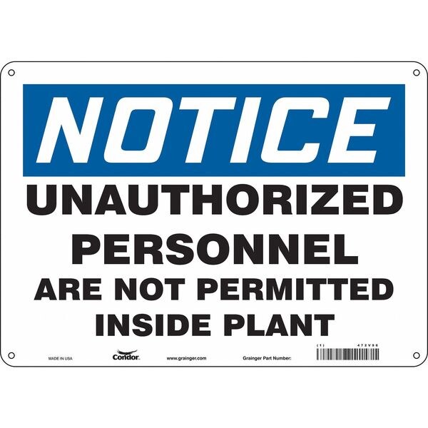 Safety Sign, Horizontal Rectangle, Number of Printed Sides 1, English, Sign Format Traditional OSHA, Sign Legend Unauthorized Personnel Are Not Permitted Inside Plant, Sign Legend Background Color White, Sign Legend Style Text