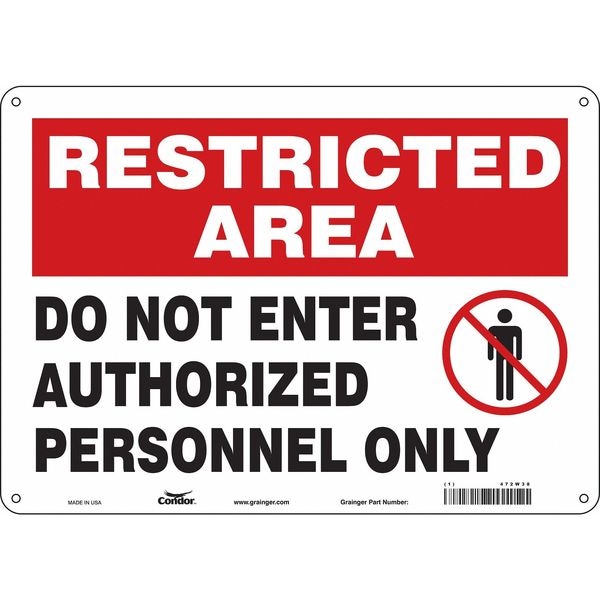 Safety Sign, Horizontal Rectangle, Number of Printed Sides 1, English, Sign Format Other Format, Sign Legend Do Not Enter Authorized Personnel Only, Sign Legend Background Color Red, White, Sign Legend Style Symbol and Text