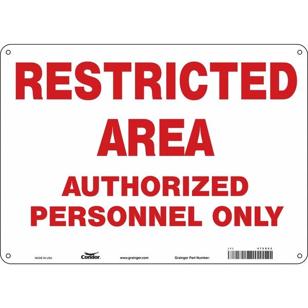 Safety Sign, Horizontal Rectangle, Number of Printed Sides 1, English, Sign Format Other Format, Sign Legend Restricted Area Authorized Personnel Only, Sign Legend Background Color White, Sign Legend Style Text