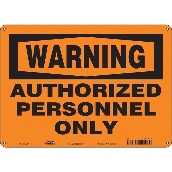Safety Sign, Horizontal Rectangle, Number of Printed Sides 1, English, Sign Format Traditional OSHA, Sign Legend Authorized Personnel Only, Sign Legend Background Color Orange, Sign Legend Style Text
