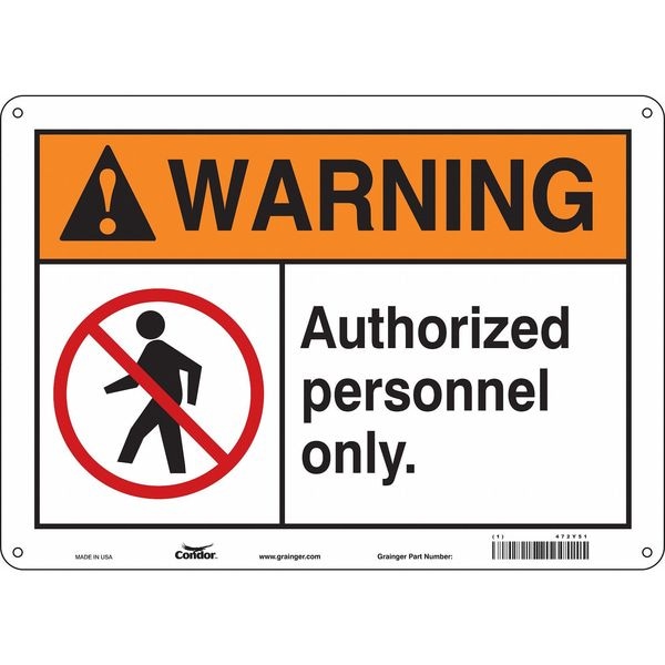 Safety Sign, Horizontal Rectangle, Number of Printed Sides 1, English, Sign Format Traditional OSHA, Sign Legend Authorized Personnel Only., Sign Legend Background Color White, Sign Legend Style Symbol and Text