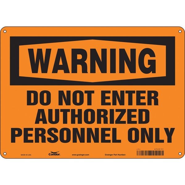 Safety Sign, Horizontal Rectangle, Number of Printed Sides 1, English, Sign Format Traditional OSHA, Sign Legend Do Not Enter Authorized Personnel Only, Sign Legend Background Color Orange, Sign Legend Style Text