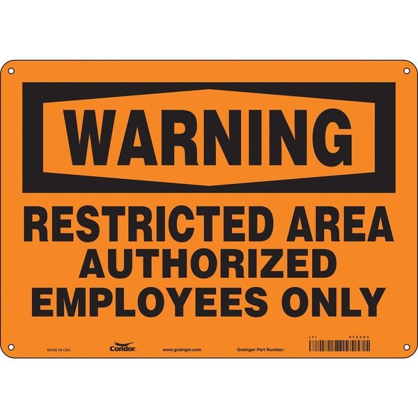 Safety Sign, Horizontal Rectangle, Number of Printed Sides 1, English, Sign Format Traditional OSHA, Sign Legend Restricted Area Authorized Employees Only, Sign Legend Background Color Orange, Sign Legend Style Text