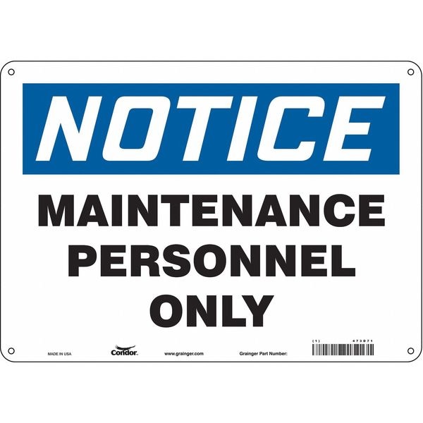 Safety Sign, Horizontal Rectangle, Number of Printed Sides 1, English, Sign Format Traditional OSHA, Sign Legend Maintenance Personnel Only, Sign Legend Background Color White, Sign Legend Style Text