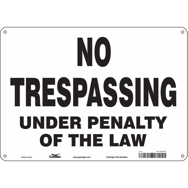 Safety Sign, Horizontal Rectangle, Number of Printed Sides 1, English, Sign Format Other Format, Sign Legend No Trespassing Under Penalty Of The Law, Sign Legend Background Color White, Sign Legend Style Text
