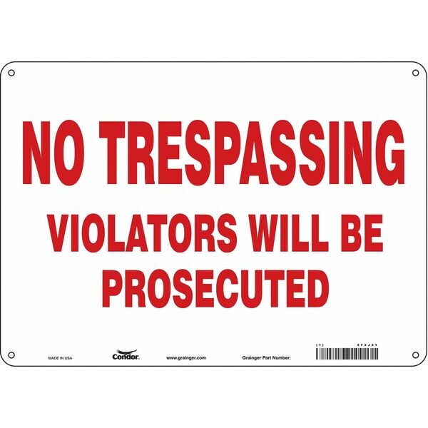 Safety Sign, Horizontal Rectangle, Number of Printed Sides 1, English, Sign Format Other Format, Sign Legend No Trespassing Violators Will Be Prosecuted, Sign Legend Background Color White, Sign Legend Style Text
