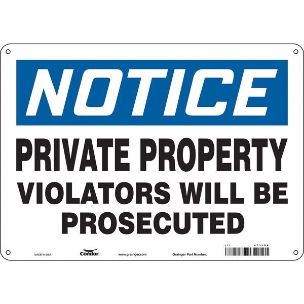 Safety Sign, Horizontal Rectangle, Number of Printed Sides 1, English, Sign Format Traditional OSHA, Sign Legend Private Property Violators Will Be Prosecuted, Sign Legend Background Color White, Sign Legend Style Text