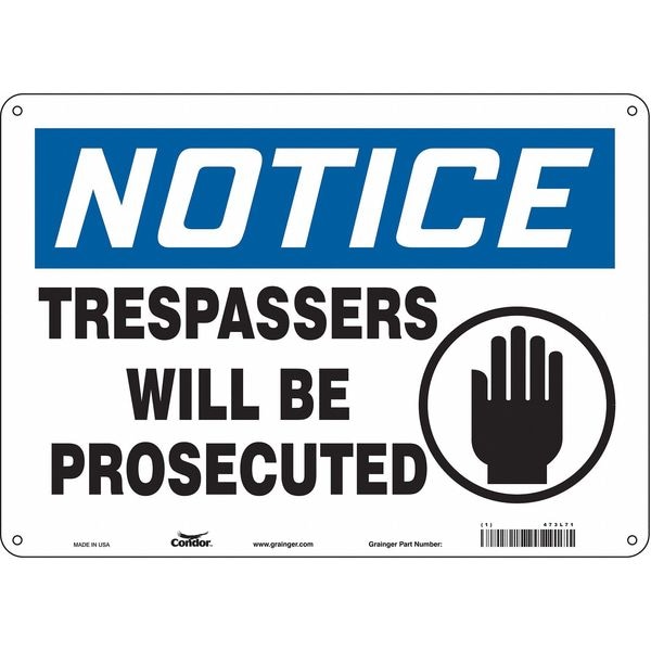 Safety Sign, Horizontal Rectangle, Number of Printed Sides 1, English, Sign Format Traditional OSHA, Sign Legend Trespassers Will Be Prosecuted, Sign Legend Background Color White, Sign Legend Style Symbol and Text