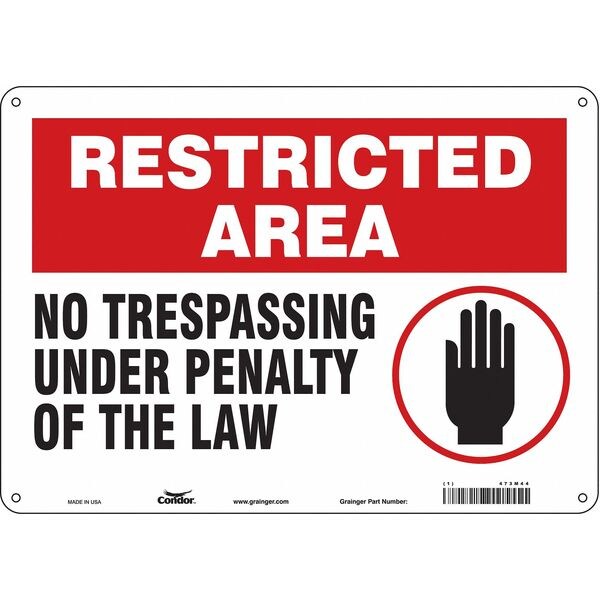 Safety Sign, Horizontal Rectangle, Number of Printed Sides 1, English, Sign Format Other Format, Sign Legend No Trespassing Under Penalty Of Law, Sign Legend Background Color Red, White, Sign Legend Style Symbol and Text