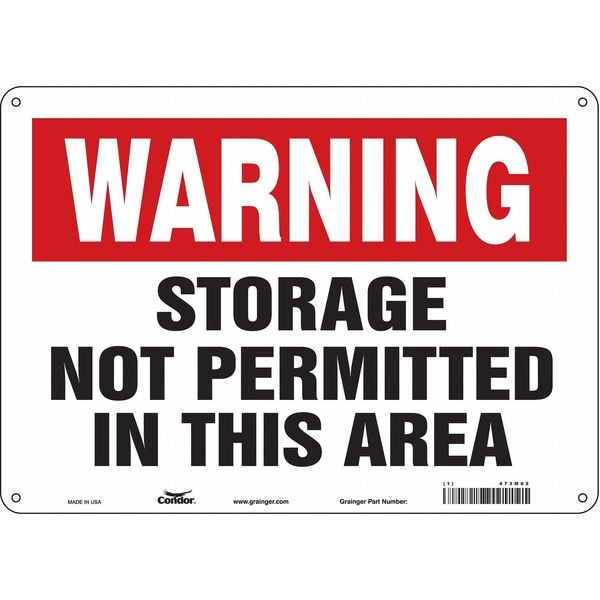 Safety Sign, Horizontal Rectangle, Number of Printed Sides 1, English, Sign Legend Storage Not Permitted In This Area, Sign Legend Background Color Red, White, Sign Legend Style Text