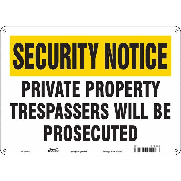Safety Sign, Horizontal Rectangle, Number of Printed Sides 1, English, Sign Format Other Format, Sign Legend Private Property Trespassers Will Be Prosecuted, Sign Legend Background Color White, Yellow, Sign Legend Style Text