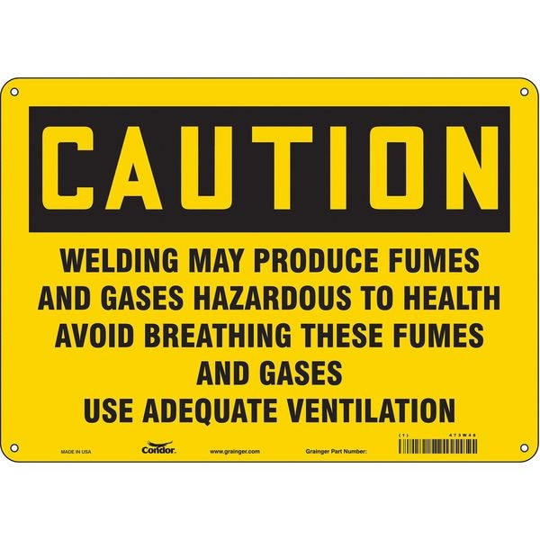 Safety Sign, Horizontal Rectangle, Number of Printed Sides 1, English, Sign Format Traditional OSHA, Sign Legend Welding May Produce Fumes And Gases Hazardous To Health Avoid Breathing These Fumes And Gases Use Adequate Ventilation, Sign Legend Background Color Yellow, Sign Legend Style Text