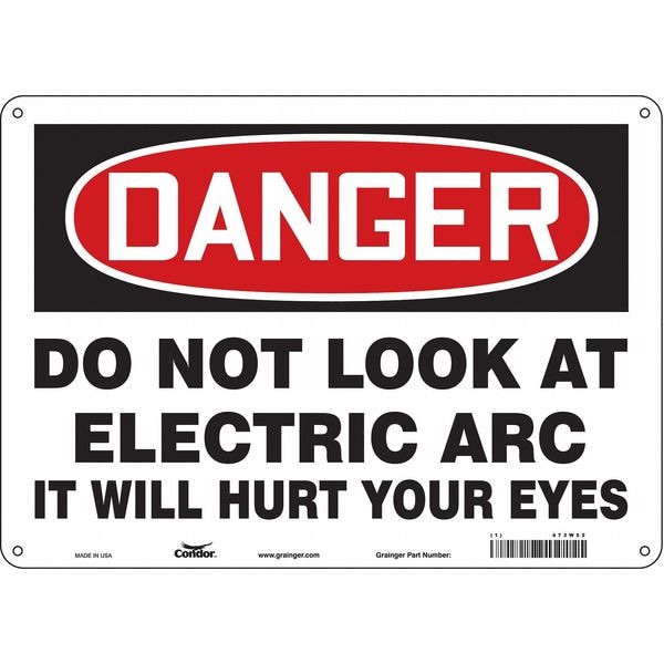Safety Sign, Horizontal Rectangle, Number of Printed Sides 1, English, Sign Format Traditional OSHA, Sign Legend Do Not Look At Electric Arc It Will Hurt Your Eyes, Sign Legend Background Color White, Sign Legend Style Text
