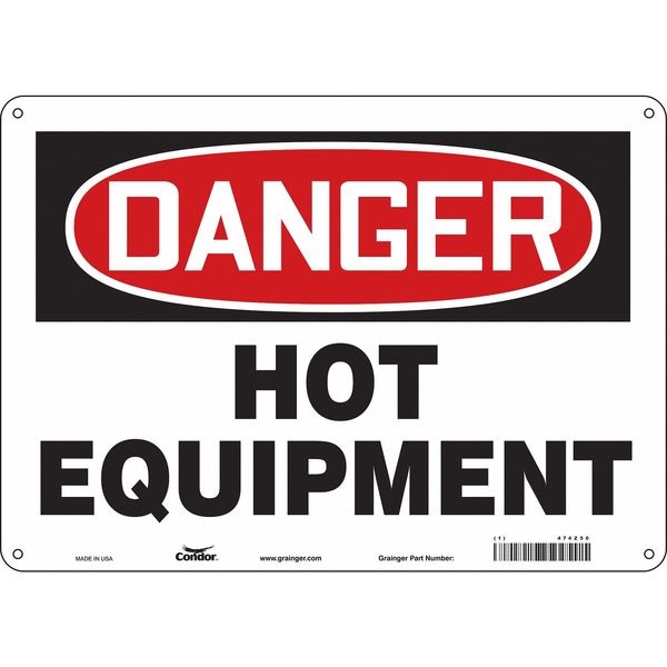Safety Sign, Horizontal Rectangle, Number of Printed Sides 1, English, Sign Format Traditional OSHA, Sign Legend Hot Equipment, Sign Legend Background Color White, Sign Legend Style Text