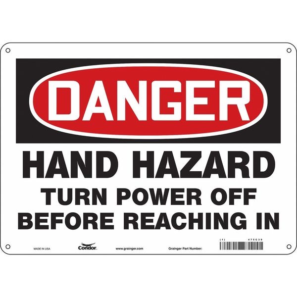 Safety Sign, Horizontal Rectangle, Number of Printed Sides 1, English, Sign Format Traditional OSHA, Sign Legend Hand Hazard Turn Power Off Before Reaching In, Sign Legend Background Color White, Sign Legend Style Text