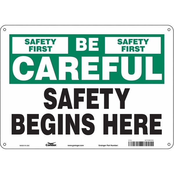 Safety Sign, Horizontal Rectangle, Number of Printed Sides 1, English, Sign Format Other Format, Sign Legend Safety First Safety Begins Here, Sign Legend Background Color Green, White, Sign Legend Style Text