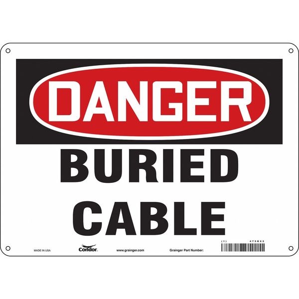 Safety Sign, Horizontal Rectangle, Number of Printed Sides 1, English, Sign Format Traditional OSHA, Sign Legend Buried Cable, Sign Legend Background Color White, Sign Legend Style Text